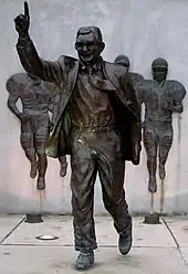 Paterno had been accepted to Boston University School of Law, and he had planned to attend before deciding to coach at Penn State.[22] After hearing of his career choice, his father asked, "For God's sake, what did you go to college for?"[23] Paterno joined Rip Engle as an assistant coach at Penn State in 1950; Engle had coached five seasons, 1944–1949, at Brown. Paterno was promoted to associate coach, the top assistant, in June 1964,[24] and when Engle announced his retirement in February 1966,[25] Paterno was named his successor the next day.[26]