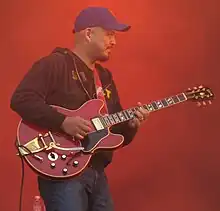 Santiago, rather than listening to popular radio, borrowed rock and roll records from the public library as he was growing up; he first discovered Les Paul and Jimi Hendrix, who led to jazz guitarist Wes Montgomery. Santiago later commented on Montgomery's influence: "And that's when I said, 'Ah, that's a hook. That's some hooky stuff in the jazz world'". He discovered jazz and country artists such as Joe Pass and Chet Atkins after studying the liner notes of albums.[4] Santiago was directly influenced by the "Hendrix chord", the sharp 9th dominant chord which, in the words of author Ben Sisario, "tapped a hidden rage that matched the horror of Thompson's scream".[30] As a teenager, Santiago also listened to classic rock and protopunk artists such as The Who, The Rolling Stones, The Velvet Underground and Iggy Pop.[31]