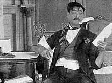 Despite the film work and the higher fees he earned from it, Barrymore continued to seek stage work, and in January 1914 he played the lead in The Yellow Ticket at New York's Eltinge Theatre. The role marked a departure from the light comedy of his previous performances, a result of Sheldon urging him to turn towards more dramatic parts. The Yellow Ticket was not the breakthrough that Barrymore wanted. A few months before the outbreak of World War I, he took a vacation to Italy with Sheldon to enjoy a temporary break from his worsening marriage. He returned from Italy and accepted another serious stage role, that of an ex-convict in Kick In, at New York's Longacre Theatre.[83] The play was a success, and Barrymore received praise from the critics; The New York Times reviewer thought that in a play that had "uncommonly able and sincere playing", Barrymore acted his role with "intelligence and vigor and impart[ed] to it a deal of charm".[84]