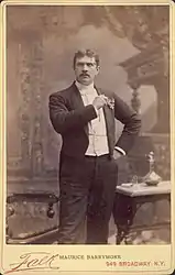 Barrymore began to contact his family's theatrical connections to find work and approached Charles Frohman, who had been the producer of Captain Jinks and had also been an employer of Barrymore's mother Georgie a decade earlier. Frohman thought that Barrymore had comedic potential but needed more experience before making a Broadway debut.[47] Barrymore joined the company of McKee Rankin, Sidney Drew's father-in-law, on the Chicago leg of their tour, at the W. S. Cleveland Theatre in October 1903. He first played the minor role of Lt. Max von Wendlowski in Magda,[50] and in November when the troupe produced Leah the Forsaken, he took the small part of Max, a village idiot with one spoken line.[51]
