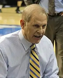Beilein was the only active collegiate coach to have achieved 20-win seasons at four different levels—junior college, NCAA Division III, NCAA Division II, and NCAA Division I.[2][3] At the time, Beilein was one of only six active Division I coaches with 700 or more career wins at all levels.[4] He has been recognized as conference coach of the year five times: in 1981 at Erie Community College, in 1988 at LeMoyne, in 1994 at Canisius, in 1998 at Richmond, and in 2014 at Michigan.[5][6] In addition, Beilein was the seventh of only ten coaches to have taken four different schools to the NCAA Division I tournament.[7][8][9] He is known for his attention to details, focus on fundamentals and knack for developing under-the-radar players.[10][11] Beilein is also widely respected in collegiate sports as one of the cleanest and most rule-abiding coaches. In a poll conducted by CBS in 2017, Beilein was voted the cleanest coach in college basketball, gathering 26.6% of the votes vs. the next highest candidate's 10.5%.[12]