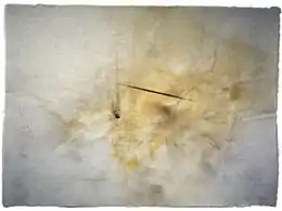 Between 1979 and 1982 Cage produced a number of large series of prints: Changes and Disappearances (1979–80), On the Surface (1980–82), and Déreau (1982). These were the last works in which he used engraving.[104] In 1983 he started using various unconventional materials such as cotton batting, foam, etc., and then used stones and fire (Eninka, Variations, Ryoanji, etc.) to create his visual works.[105] In 1988–1990 he produced watercolors at the Mountain Lake Workshop.
