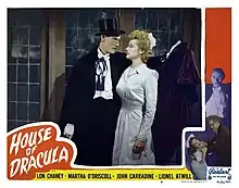 John Carradine (/ˈkærədiːn/ KARR-ə-deen; born Richmond Reed Carradine; February 5, 1906 – November 27, 1988) was an American actor, considered one of the greatest character actors in American cinema.[1][2] He was a member of Cecil B. DeMille's stock company and later John Ford's company, best known for his roles in horror films, Westerns, and Shakespearean theater, most notably portraying Count Dracula in House of Frankenstein (1944), House of Dracula (1945), Billy the Kid Versus Dracula (1966), and Nocturna: Granddaughter of Dracula (1979). He’s also best known as “Preacher Casy” in John Ford’s The Grapes Of Wrath. In later decades of his career, he starred mostly in low-budget B-movies. In total, he holds 351 film and television credits, making him one of the most prolific English-speaking film and television actors of all time.