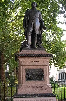 A memorial to Franklin was set up almost immediately on assumption of his death. This is in Westminster Abbey to a design of Matthew Noble.[38]