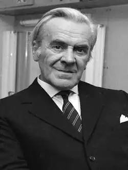 In 1971 Le Mesurier played the lead role in Dennis Potter's television play Traitor, in which he portrayed a "boozy British aristocrat who became a spy for the Soviets";[103] his performance won him a British Academy of Film and Television Arts "Best Television Actor" award.[104] Writing for the British Film Institute, Sergio Angelini considered "Le Mesurier is utterly compelling throughout in an atypical role".[105] Chris Dunkley, writing in The Times, described the performance as "a superbly persuasive portrait, made vividly real by one of the best performances Mr Mesurier [sic] has ever given".[106] The reviewer for The Sunday Times agreed, saying that Le Mesurier, "after a lifetime supporting other actors with the strength of a pit-prop, gets the main part; he looks, sounds and feels exactly right".[107] Reviewing for The Guardian, Nancy Banks-Smith called the role "his Hamlet", and said that it was worth waiting for.[108] Although delighted to have won the award, Le Mesurier commented that the aftermath proved "something of an anticlimax. No exciting offers of work came in".[109]