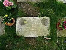 Towards the end of his life Le Mesurier wrote his autobiography, A Jobbing Actor; the book was published in 1984, after his death.[156] Le Mesurier's health visibly declined from July 1983 when he was hospitalised for a short time after suffering a haemorrhage.[125] When the condition recurred later in the year he was taken to Ramsgate Hospital;[157] after saying to his wife, "It's all been rather lovely", he slipped into a coma[158] and died on 15 November 1983, aged 71.[159] His remains were cremated, and the ashes buried at the Church of St. George the Martyr, Church Hill, Ramsgate. His epitaph reads: "John Le Mesurier. Much loved actor. Resting."[160] His self-penned death notice in The Times of 16 November 1983 stated that he had "conked out" and that he "sadly misses family and friends".[126][158]