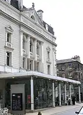 The Millicent Ward repertory company typically staged evening performances of three-act plays; the works changed each week, and rehearsals were held during the daytime for the following week's production.[21] Under his birth name John Halliley, Le Mesurier made his stage debut in September 1934 at the Palladium Theatre, Edinburgh in the J. B. Priestley play Dangerous Corner, along with three other newcomers to the company.[22] The reviewer for The Scotsman thought that Le Mesurier was well cast in the role.[22] Appearances in While Parents Sleep and Cavalcade were followed by a break, as problems arose with the lease of the theatre. Le Mesurier then accepted an offer to appear with Alec Guinness in a John Gielgud production of Hamlet, which began in Streatham in the spring of 1935 and later toured the English provinces. Le Mesurier understudied Anthony Quayle's role of Guildenstern, and otherwise appeared in the play as an extra.[23]