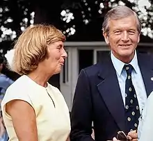 Back in New York City, Lindsay met his future wife, Mary Anne Harrison (1926–2004), at the wedding of Nancy Walker Bush (daughter of Connecticut's Senator Prescott Bush and sister of future President George Herbert Walker Bush and aunt of George W. Bush & Jeb Bush),[2] where he was an usher and Harrison a bridesmaid.[2] She was a graduate of Vassar College[4] and a distant relative of William Henry Harrison and Benjamin Harrison.[2] They married in 1949.[4] That same year Lindsay was admitted to the bar, and rose to become a partner in his law firm four years later.[6] They had three daughters and a son.[8]