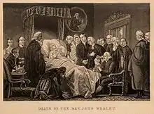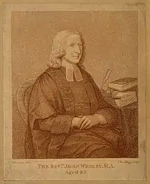 ![]() Portrait (c. 1789) of Wesley by George Romney, at the National Portrait Gallery in London. | |