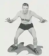 As a 5-foot-10-inch (1.78 m) guard with the Purdue Boilermakers, Wooden was the first college basketball player to be named an All-American three times, and the 1932 Purdue team on which he played as a senior was retroactively recognized as the pre-NCAA tournament national champion by the Helms Athletic Foundation and the Premo-Porretta Power Poll.[5][6] He played professionally in the National Basketball League (NBL). Wooden was inducted into the Naismith Memorial Basketball Hall of Fame as a player (1960) and as a coach (1973), the first person ever enshrined in both categories.[lower-alpha 1]