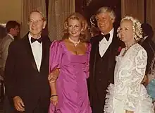 Brown and his first wife divorced in 1977.[9] On March 17, 1979, he married former Miss America and CBS sportscaster Phyllis George.[36] The ceremony was performed by Norman Vincent Peale.[2] Brown and George had two children, Lincoln Tyler George Brown and Pamela Ashley Brown.[37]