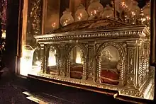 The head and torso were retained by the monastery at Segovia. They were venerated until 1647, when on orders from Rome designed to prevent the veneration of remains without official approval, the remains were buried in the ground. In the 1930s they were disinterred, and are now sited in a side chapel in a marble case above a special altar.[35]