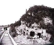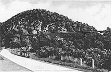The collapse rendered the canal and nearby road impassable,[22] and caused a boiler explosion that shook the nearby Rosendale trestle. At the time of the collapse, the total cost of the damage was estimated to be between $20,000 and $25,000.[20] Another, larger collapse happened the following week, late at night. This cave-in was believed to have been caused by the December 19 collapse.[22] Shortly after the landslides, "swarms of gawking spectators"[23] crowded the village to photograph the debris; one such photograph was alleged to depict the Madonna.[23] Frequent rockfalls as a result of mining led to calls to destroy the mountain in 1907.[24]