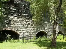 In 2003, the town of Rosendale considered either leasing a tract of land near Joppenbergh, or purchasing a 1+1⁄2-acre (0.61 ha) lot, to expand parking on Main Street. The lot belonged to former village mayor Joseph Reid,[53] who refused to sell it to the town. Although the town board considered using eminent domain to acquire Reid's property,[54] it agreed in June 2004 to lease the Joppenbergh property instead, for a period of 10 years,[55] at a rate of $3,500 each year.[56] One member of the town board opposed the deal because it would not secure the land beyond the 10-year term.[57] The lease allowed the town to create a park by the municipal lot, Willow Kiln Park, which contains several defunct cement kilns. Willow Kiln Park has served as the setting of an art show[58] and, following a zombie-themed street festival, a concert.[59]