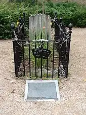 Mary died in 1834, and Grimaldi moved to 33 Southampton Street, Islington,[173] where he spent the last few years of his life alone as a depressed alcoholic.[174] On 31 May 1837 he complained of a tightening of the chest but recuperated enough to attend his local public house, The Marquis of Cornwallis, where he spent a convivial evening entertaining fellow patrons and drinking to excess.[174][175] He returned home that evening and was found dead in bed by his housekeeper the following morning.[176][177] The coroner recorded that he had "died by the visitation of God".[178] Grimaldi was buried in St. James's Churchyard, Pentonville, on 5 June 1837.[179] The burial site and the area around it was later named Joseph Grimaldi Park.[180]