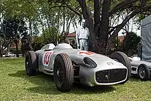 Argentina's largest oil company, Repsol YPF, launched the "Fangio XXI" gas brand. The Zonda 2005 C12 F, also known as the Zonda Fangio, was designed in honour of Fangio and was released 10 years after his death.[59] Maserati created a special website in 2007 to commemorate the 50th anniversary of his fifth and final world championship triumph.[60] A Mercedes-Benz W196R Formula 1 race car, driven by Fangio in his World Championship-qualifying Grand Prix races in 1954 and 1955 was sold for a record $30 million at an auction in England on 12 July 2013.[61]