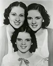 The trio had toured the vaudeville circuit as "The Gumm Sisters" for many years by the time they performed in Chicago at the Oriental Theater with George Jessel in 1934. He encouraged the group to choose a more appealing name after "Gumm" was met with laughter from the audience. According to theater legend, their act was once erroneously billed at a Chicago theater as "The Glum Sisters".[20]