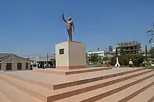 On 9 December 1961, Tanganyika gained independence, an event marked by a ceremony at National Stadium.[132] A law was soon presented to the Assembly that would restrict citizenship to indigenous Africans; Nyerere spoke out against the bill, comparing its racialism to the ideas of Adolf Hitler and Hendrik Verwoerd, and threatened to resign if it passed.[133] Six weeks after independence, in January 1962 Nyerere resigned as Prime Minister,[134] intent on focusing on restructuring TANU and trying to "work out our own pattern of democracy".[135] Retreating to become a parliamentary back bencher,[136] he appointed close political ally Rashidi Kawawa as the new Prime Minister.[137] He toured the country, giving speeches in towns and villages in which he emphasised the need for self-reliance and hard work.[138] In 1962, his alma mater at Edinburgh awarded Nyerere with a Honorary Degree of Doctor of Laws.[139]