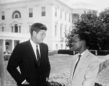 On 9 December 1962, a year after independence, Tanganyika became a republic.[149] Nyerere moved into the State House in Dar es Salaam, the former official residence of British governors.[160] Nyerere disliked life in the building, but remained there until 1966.[161] Nyerere appointed Kawawa his vice president.[162] In 1963, he put his name forward to be Rector of Edinburgh University, vowing to travel to Scotland whenever needed; the position instead went to the actor James Robertson Justice.[163] He made official visits to West Germany, the United States, Canada, Algeria, Scandinavia, Guinea, and Nigeria.[164] In the U.S. he met President John F. Kennedy and although they personally liked each other, he failed to convince Kennedy to toughen his stance on apartheid South Africa.[165]