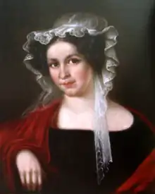 His father, Euzebiusz Słowacki, a Polish nobleman of the Leliwa coat of arms, taught rhetoric, poetry, Polish language, and the history of literature at the Krzemieniec Lyceum in Kremenets;[3] from 1811 he held the chair (katedra) of rhetoric and poetry at Vilnius Imperial University.[1][2][4] He died in 1814, leaving Juliusz to be raised solely by his mother, Salomea Słowacka (née Januszewska).[1][2] In 1818 she married a professor of medicine, August Bécu.[1][2] She ran a literary salon where young Juliusz was exposed to diverse influences.[5] It was there in 1822 that the 13-year-old met Adam Mickiewicz, the first of the Three Bards of Polish literature.[6][7] Two years later, in 1824, Mickiewicz was arrested and exiled by the Russian authorities for his involvement in a secret patriotic Polish student society, the Philomaths; Słowacki likely met with him on Mickiewicz's final day in Wilno.[6]