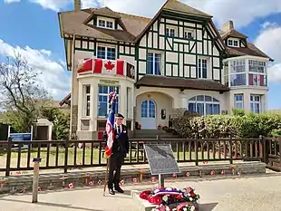 The landing is commemorated today by the museum and memorial at the Juno Beach Centre in Courseulles-sur-Mer as well as exhibits at the Canadian War Museum and other Canadian military museums. One of the Sherman tanks that landed at Juno, the M4A3 Sherman Bomb, fought all the way into Germany and is today preserved at Sherbrooke, Quebec. In Bernières-sur-Mer, the owners of a house facing the beach hold memorial services yearly. The house is now named "Canada House".