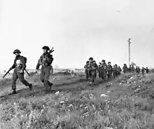 In 1942, the Western Allies agreed to open a second front (the Western Front) in Western Europe to take pressure off the beleaguered Red Army in the Soviet Union.[4] While Britain and the United States did not yet possess the resources to mount a full invasion, invasion plans that came to be known as Operation Sledgehammer were drawn up, in case the German position in Western Europe weakened or the USSR's situation became dire. In August 1942 Anglo-Canadian forces attempted an abortive landing—Operation Jubilee—at the French port of Dieppe; the landing was designed to test the feasibility of a cross-channel invasion. The attack was poorly planned and ended in disaster; 4,963 soldiers were killed, wounded or captured.[5] Following the Anglo-American victory against Field Marshal Erwin Rommel in North Africa in May 1943, British, American and Canadian troops invaded Sicily in July 1943, followed by Italy in September.[6] By December the Allies' progress had slowed facing tenacious German resistance and the difficult geography of the Italian Peninsula.[7]