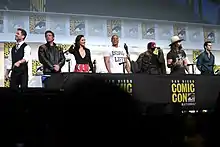 Warner Bros. CEO Kevin Tsujihara mandated the film to be under two hours.[7][106][107] In consequence, the final cut runs for that exact time.[108] The company also did not opt to delay the film's release despite the fact that there had been numerous problems in post-production, so that the executives would receive their cash bonuses before the company's merger with AT&T.[109][110] In February 2018, it was reported that Snyder was fired from directorial duties from Justice League, after his cut was deemed "unwatchable" according to Collider's Matt Goldberg. "I'd heard similar things from separate sources over the last year as well, I also heard that Snyder's rough-cut of the movie was 'unwatchable' (a word that jumped out at me because it's rare you hear two separate sources use exactly the same adjective). Of course, even if that's true, there's obviously more to the story since rough cuts can be fixed up with reshoots, rewrites, etc.", Goldberg wrote.[111][112] According to DC Comics publisher, comic book artist Jim Lee, Snyder was not fired. Speaking at the Calgary Comic and Entertainment Expo, Lee stated "that [Snyder] was not fired at all and that he stepped down from the production due to a family matter", as far as he knew.[113] In July 2020, Ray Fisher claimed that Whedon's on-set treatment of the film's cast and crew was "gross, abusive, unprofessional, and completely unacceptable."[114] Justice League and Batman v Superman writer Chris Terrio called the theatrical cut an act of vandalism, and attempted unsuccessfully to get his name removed from the film.[115]