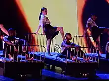 "The Beast Within" remix was again used as the video introduction to the 2004 Re-Invention World Tour, including imagery of Madonna from her exhibition X-STaTIC Pro=CeSS in collaboration with Steven Klein, prior to her appearing on stage. Chart Attack magazine staff noted its "quasi-religious mumbo-jumbo" paired with "some genuinely arty images of the singer" on the screens, while Sal Cinquemani from Slant Magazine found the introduction "macabre".[141][142] It was subsequently included on the 2006 documentary and live album I'm Going to Tell You a Secret.[143] "Justify My Love" was later used as a video interlude during The MDNA Tour in 2012. The performance featured dancers wearing white pierrot masks, who "impressed with their fully synchronized dance moves", according to Danilo Saraiva from Quem magazine.[144] The video, directed by Tom Munro, featured a lingerie-clad Madonna.[144][145] The number was included in the live album MDNA World Tour, released on September 6, 2013.[146] Elements of the song were also used during the "S.E.X." interlude on the Rebel Heart Tour in 2015–16, as dancers writhed on "gravity-defying" beds.[147] The performance of the song at the March 19–20, 2016 shows in Sydney's Allphones Arena was recorded and released in Madonna's fifth live album, Rebel Heart Tour.[148]