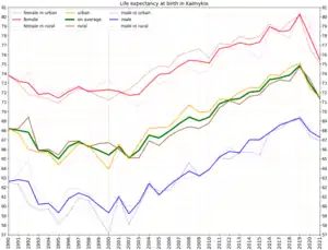 - "Ожидаемая продолжительность жизни при рождении" [Life expectancy at birth]. Unified Interdepartmental Information and Statistical System of Russia (in Russian). Retrieved June 28, 2022.