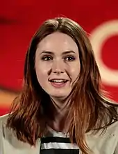 Gillan went on to portray Amy Pond, companion to the Eleventh Doctor (portrayed by Matt Smith), on the British sci-fi series Doctor Who. Before being cast in the role in May 2009, she had previously appeared on Doctor Who in Series 4 episode "The Fires of Pompeii" in the role of a soothsayer.[7] She made her first on-screen appearance as Amy in "The Eleventh Hour" with her cousin Caitlin Blackwood portraying a younger version of the same character.[12][13][14] In 2010, she won in the Entertainment category at the Young Scot Awards. She appeared in the sixth series in 2011 and the first five episodes of the seventh series in 2012,[15] after which her character and Rory Williams (portrayed by Arthur Darvill) left the series.[16] Gillan reprised her role in the 2013 Christmas special "The Time of the Doctor", to coincide with Smith's departure as the Doctor.[17]