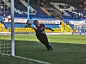 On 14 August 2009, Schmeichel signed for League Two side Notts County in a deal that is believed to have broken the club's previous transfer record. The transfer reunited Schmeichel with his former Manchester City manager, Sven-Göran Eriksson, who had recently been appointed director of football for Notts.[39] He was the highest paid player at the club, earning £1 million annually.[40] He made his debut on 22 August and kept a clean sheet in the side's 3–0 win against Dagenham & Redbridge. In September 2009, Schmeichel almost scored with an audacious overhead kick against Morecambe when he came up from a corner late on in the game.[41]