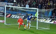 In March, TV footage[69] appeared to support Schmeichel's claim that he had scored what would have been the first goal of his career, when Leicester equalised, in injury time, against Yeovil Town. However, the match officials ruled that his header had not crossed the line and the goal was officially credited[70] to Chris Wood, who followed up to put the ball in the net.