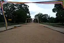 The most important one is known as Maha Devale or Maha Kovil and is dedicated to Skanda-Murugan known amongst the Sinhalese as Kataragama deviyo. It does not have a statute of the deity; instead it holds a Yantra, a spiritual drawing of the deity's power.[39] Of all the shrines in the complex, it is the largest and the first that all pilgrims come to visit. Although it does not have a representation of the deity, kept in an adjoining room is a statue of Shiva also known amongst Sinhalese as Karanduva. Within it there is a clay arm chair known as Kalana Mandima that supposedly belonged to Kalyanagiri Swamy. It is covered by a leopard's skin and on it has all the ceremonial instruments. To the left of the main shrine lies a smaller shrine dedicated to Hindu god Ganesha who is known as Ganapatidevio amongst Sinhalese. Tamils refer to him as the Manica Pillaiyar as well. It too is a small rectangular building without any decoration. To the left of Ganesha shrine stands the Vishnu Devale the shrine dedicated to Vishnu within which there is also a Buddha image. Behind this is a large Bo tree that tradition holds as sprung from the sapling of the original Bo tree in Anuradhapura, hence is very much held in high esteem by the visiting Buddhists.[38]