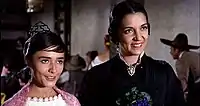 In 1956, she participated in the film Man from Del Rio (1956), opposite Anthony Quinn, one of the few Hollywood movies to have Mexican actors as main stars.[10] Later she acted in Westerns Dragoon Wells Massacre (1957) with Barry Sullivan, and The Badlanders (1958), with Alan Ladd and Ernest Borgnine. In 1957, she debuted on television with a guest appearance in an episode of Playhouse 90. In 1959, she acted for the first time under Sam Peckinpah's direction in an episode of The Rifleman. In 1962 she appeared as the historical character La Tules in an episode of Death Valley Days.[14]