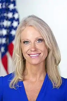 Kellyanne Elizabeth Conway (née Fitzpatrick; born January 20, 1967) is an American political consultant and pollster, who served as Senior Counselor to the President in the administration of Donald Trump from 2017 to 2020.[1][2][3][4] She was previously Trump's campaign manager, having been appointed in August 2016; Conway is the first woman to have run a successful U.S. presidential campaign.[5]
