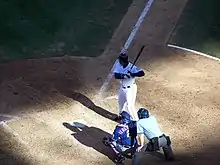 In May 2010, Mariners' manager Don Wakamatsu made the decision to significantly limit Griffey's play due to his ongoing poor performance.[96][97] On May 10, 2010, beat writer Larry Larue reported that Wakamatsu had not used Griffey in a pinch-hitting situation the prior week, with two players stating that Griffey had been asleep.[98] National media quickly covered the incident, dubbed "Napgate".[97][99][100][101][102] In the ensuing days, teammate Mike Sweeney said he challenged anyone who said Griffey was asleep "to stand up and fight me"[103] with Wakamatsu denying Griffey had been asleep;[101] however, Griffey did not deny it.[96][104] Griffey's agent stated Larue's initial report had been posted in error and that Larue had asked his employer to remove it,[105] both of which they refuted.[106][107] In the aftermath of his report, Larue was boycotted by players.[101][108]