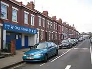 Opposite the Kenilworth Stand is the Oak Road End, which bears an electronic scoreboard on its roof and can seat a maximum of 1,800 fans.[33][16] Originally a home section, the Oak Road End was turned into a stand for away fans only at the start of the 1991–92 season. Early in the 2013–14 season, the Oak Road End was re-opened for home supporters for fixtures where visiting support was predicted to be especially low, with the section for away fans moved to A Block of the Kenilworth Stand for these games.[34] Later that season, it was announced that the stand was available for shared use between both home and away supporters, increasing Kenilworth Road's home capacity by 15%. The Oak Road End has an entrance that is often considered unusual, requiring spectators to go through an entrance built into the row of houses and up stairs to the stand.[9][36]
