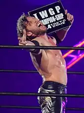 On October 23, Omega defeated Kai to become the new World Junior Heavyweight Champion.[41] He lost the title back to Kai on May 27, 2012, in his sixth title defense.[42] On December 23, Omega defeated El Generico to win the KO-D Openweight Championship for the first time.[43] On January 27, 2013, Omega defeated Isami Kodaka in a title vs. title match, retaining his title and winning the DDT Extreme Championship held by Kodaka.[44] He lost the KO-D Openweight Championship to Shigehiro Irie on March 20, 2013.[45] On May 26, Omega, Ibushi, and Gota Ihashi defeated Yuji Hino, Antonio Honda, and Daisuke Sasaki to win the KO-D 6-Man Tag Team Championship.[46] Omega's team lost the championship to Hino, Honda, and Hoshitango.[47] On August 25, Omega lost the DDT Extreme Championship to Danshoku Dino.[48]