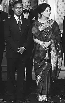 Zia's first son, Tarique Rahman (b. 1967), got involved into politics and went on to become the acting chairman of Bangladesh Nationalist Party.[26] Her second son, Arafat Rahman "Koko" (b. 1969), died of a cardiac arrest in 2015.[27] Zia's sister, Khurshid Jahan (1939–2006) served as the Minister of Women and Children Affairs during 2001–2006.[28] Her younger brother, Sayeed Iskander (1953–2012), was also a politician who served as a Jatiya Sangsad member from the Feni-1 constituency during 2001–2006.[29] Her second brother, Shamim Iskandar, is a retired flight engineer of Bangladesh Biman.[30][31] Her second sister is Selina Islam.[32]