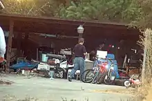 The private area of the backyard included sheds, one of which was used as a recording studio in which Garrido recorded himself singing religious-themed and romantic country songs,[28] two homemade tents, and what has been described as a camping-style shower and toilet. The area was surrounded by tall trees and a 6-foot (1.8-meter)-high fence. An entrance to the secondary backyard was covered by trees and a tarpaulin. Privacy was enhanced by tents and outbuildings. Electricity was supplied by extension cords. The enclosure also housed a car that matched the description of the one used in the abduction.[51]