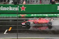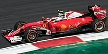 Räikkönen left both Scuderia Ferrari and the sport after the 2009 season, his sole victory that year having come in that season's Belgian Grand Prix due to driving an uncompetitive Ferrari F60. On his return to Formula One, Räikkönen drove for Lotus in 2012 and 2013, scoring the team's only victories. In September 2013, Ferrari announced his re-signing on a two-year contract, beginning in the 2014 season.[3] This contract was subsequently extended until the end of the 2018 season. During his second Ferrari stint, Räikkönen scored 26 podiums, two pole positions, and a victory at the 2018 United States Grand Prix, 113 Grands Prix after his last victory. Räikkönen finished among the top four overall in the championship on multiple occasions during his second Ferrari stint, finishing his total eight-year long Ferrari career with a third place in the 2018 championship.[4] Räikkönen left Ferrari at the end of the 2018 season, and moved to Alfa Romeo Racing on a two-year contract, later extending it until the end of 2021, after which he retired from Formula One.