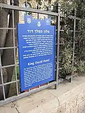 In July 2006, the Menachem Begin Heritage Center organized a conference to mark the 60th anniversary of the bombing. The conference was attended by past and future Prime Minister Benjamin Netanyahu and former members of Irgun.[47] A plaque commemorating the bombing was unveiled, stating "For reasons known only to the British, the hotel was not evacuated." The British Ambassador in Tel Aviv and the Consul-General in Jerusalem protested, saying "We do not think that it is right for an act of terrorism, which led to the loss of many lives, to be commemorated", and wrote to the Mayor of Jerusalem that such an act of terror could not be honoured, even if it was preceded by a warning. The British government also demanded the removal of the plaque, pointing out that the statement accusing the British of failing to evacuate the hotel was untrue and "did not absolve those who planted the bomb."[47][48]