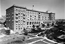 In 1946, the Secretariat occupied most of the southern wing of the hotel, with the military headquarters occupying the top floor of the south wing and the top, second and third floors of the middle of the hotel.[14] The military telephone exchange was situated in the basement.[8][9] An annex housed the military police and a branch of the Criminal Investigation Department of the Palestine Police.[13]