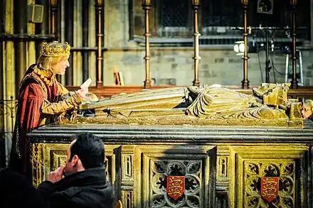 The Worcester Repertory Company staged a production of the play (directed by Ben Humphrey) in 2016 around the tomb of King John in Worcester Cathedral on the 800th anniversary of the king's death.[42] King John was played by Phil Leach.[42]