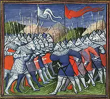 The elites were composed of counts, dukes, senatores, and other high noblemen, who were frequently related by marriage with the monarch,[51] and who usually claimed the most powerful positions in society, either as governors, bishops, or as palatine officials or companions of the king or queen. The Galician nobility, however, were also frequently found as rebels, either as supporters of a different candidate to the throne, or aspiring to it themselves, or simply as disobedient to the king's orders and will.[52] At the service of the noblemen were miles (knights) and infanzones; they were often found marching to war with their subalterns on behalf of a patron, or as vicars and administrators.