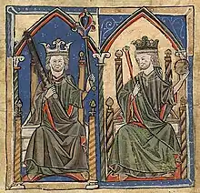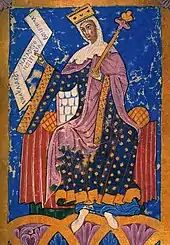 Two years after Raymond's marriage, in 1093, another French crusader, his cousin Henry, the grandson of Duke Robert I of Burgundy and nephew of Alfonso's queen, was given the hand of the Alfonso's illegitimate daughter Theresa, receiving lands in Castille. Both Burgundians were close allies in the affairs of the realm, ratifying a pact of friendship where Raymond promised his cousin the Kingdom of Toledo or the Kingdom of Galicia, together with a third of his treasure, in return for Henry's aid in acquiring the crown as successor of King Alfonso.[77] However, by 1097 King Alfonso granted Henry the counties of Portugal and Coimbra, from the river Minho to the Tagus,[78] thus limiting the powers of Raymond, who by this time was securing an important nucleus of partisans in Galicia, including Count Pedro Fróilaz de Traba, whilst appointing his own notary, Diego Gelmírez, as bishop of Compostela. In successive years he also obtained the government of Zamora, Salamanca, and Ávila,[78] but he died in 1107, two years before King Alfonso, who was now in his seventies. The government of Galicia and their other possessions was retained by Alfonso's widow, Urraca, who styled herself Mistress and Empress of Galicia.[79] King Alfonso, in a council held in León, asked the magnates of Galicia to swear an oath on the defense of the rights of his grandson, Alfonso Raimúndez, to the kingdom of Galicia, in case his mother Urraca remarried.[80]