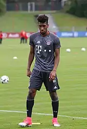Kingsley Junior Coman (French pronunciation: [kiŋslɛ ʒy.njɔʁ kɔman, -mɑ̃];[3] born 13 June 1996) is a French professional footballer who plays as a winger for Bundesliga club Bayern Munich and the France national team.[4][5][6][7][8]
