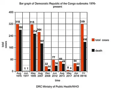 - "Ebola virus disease – Democratic Republic of the Congo. Disease Outbreak News, 14 September 2018". World Health Organization (WHO). Archived from the original on 17 September 2018. Retrieved 19 September 2018.