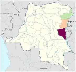 ![]() Democratic Republic of the Congo & Uganda; areas affected by the epidemic. | |||||||||||||||||