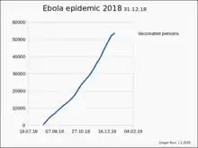 On 16 March 2019, the director of the CDC indicated that the outbreak in the DRC could last another year, additionally suggesting that vaccine supplies could run out.[75] According to the WHO, resistance to vaccination in the Kaniyi Health Zone was ongoing as of March 2019.[76] There was still a belief by some in surrounding areas that the epidemic was a hoax.[77]